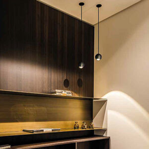 Berrier Junior Suspension is a thin wire pendant that has a timeless, round head design and a convex glass lens – somewhat resembling an eyeball. It can be mounted with a canopy or regressed base when ceiling is accessible from above. Available in 2 standard color temperatures and 8 finish combinations.