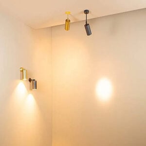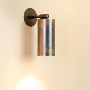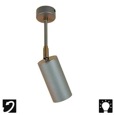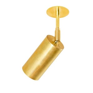 Bicchiere Tondo Con Basetta (with base) and Bicchiere Tondo Raso Muro (flush with surface) are adjustable wall or ceiling mounted versions in the same family with different base options. It is made of aluminum with 7 standard body finishes, and 2 detail finishes. Bulb by others.