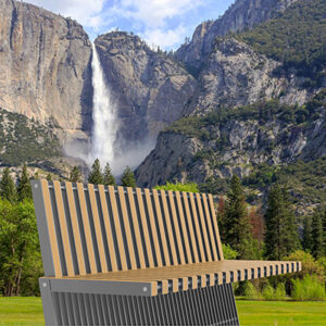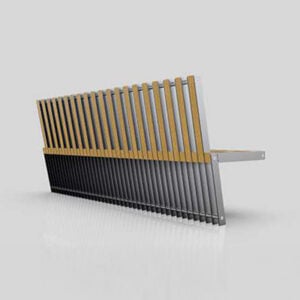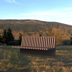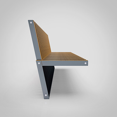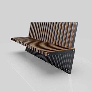 DOPPIO Bench is a bench from the DOPPIO collection for outdoor spaces with a seat made of hardwood, and a frame of hot galvanized steel that can be powder coated any RAL color. Fixed with base flange and expansion anchor or rooted in the ground.