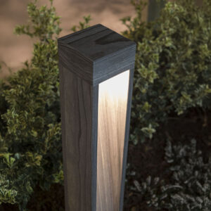 DUVALI is a square LED bollard made of Accoya®, a sustainable, highly durable wood treated with Acetylation treatment. It is available in 3 different heights with 8W total power and diffuse optics. Dark Sky compliant for output below 80°.