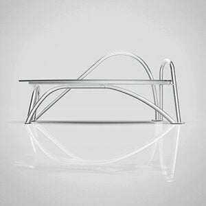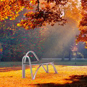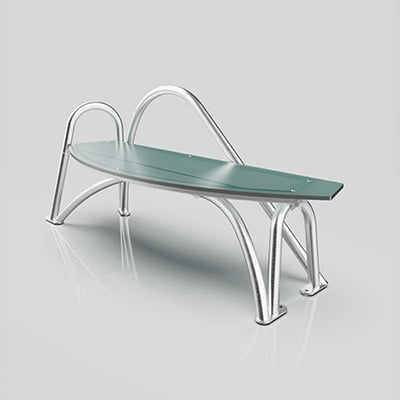 FLOW Bench is a bench from the FLOW collection for outdoor spaces with a seat made of structural laminated glass, and a frame of hot galvanized or stainless steel that can be powder coated any RAL color. Fixed with base flange and expansion anchor or rooted in the ground.