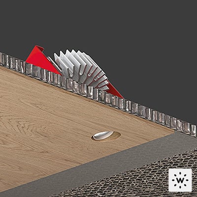The Genius Basic Slope Naked is a totally recessed indoor downlight (Ø0.79”) providing surface integration in any context and material – wood, cement, mirror, marble – with an asymmetrical light emission hole with a 40° angled axis. It is available in 3000K as standard with a black finish.