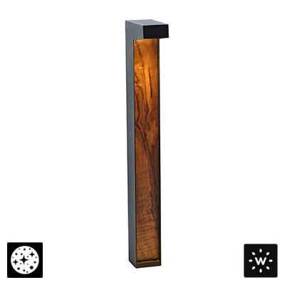 KL4 Wood is an outdoor LED bollard, based off the KL4 bollard, with a rectangular head and real teak or simulated wood set in the aluminum body. It is offered in 2 heights – 2-foot or 3-foot – 4 color temperatures, 3 optic options and 1 wood and 3 simulated wood options with 5 standard finishes. Dark Sky compliant.