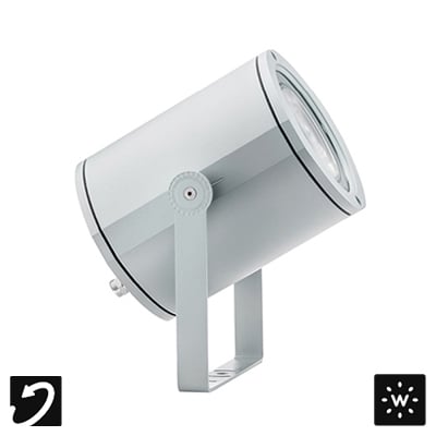 MOK is a family of easy to install, durable LED fixtures that integrate into a variety of environments with wall, pole, or ceiling mounted versions, spotlights and bollards. MOK Floodlight is the larger floodlight (Ø6.7”), rotatable 180° horizontally and 90° vertically, suitable for outdoor installation and resistant to water thanks to its IP65, IP68 rating. It is available in 3 color temperatures, 3 optics options, and 3 standard finishes.