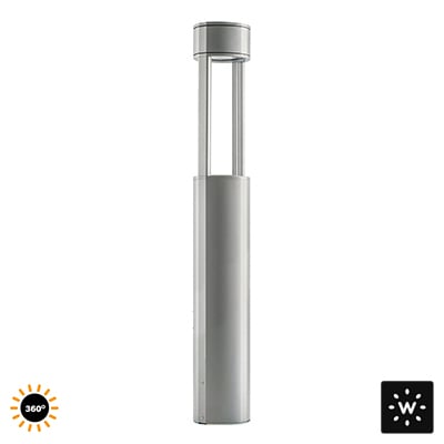 MOK is a family of easy to install, durable LED fixtures that integrate into a variety of environments with wall, pole, or ceiling mounted versions, spotlights and bollards. MOK Bollard 1000 is a 42.0” height version with 360° light emission, suitable for outdoor installation and resistant to water thanks to its IP65, IP68 rating. It is available in 3 color temperatures and 3 standard finishes.