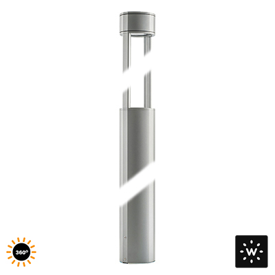 MOK is a family of easy to install, durable LED fixtures that integrate into a variety of environments with wall, pole, or ceiling mounted versions, spotlights and bollards. MOK Bollard 3300 is a 130.0” height version with 360° light emission, suitable for outdoor installation and resistant to water thanks to its IP65, IP68 rating. It is available in 3 color temperatures and 3 standard finishes.
