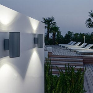 MOK is a family of easy to install, durable LED fixtures that integrate into a variety of environments with wall, pole, or ceiling mounted versions, spotlights and bollards. MOK Wall Double is a Ø6.7” wall mount version with up and down beam, suitable for outdoor installation and resistant to water thanks to its IP65, IP68 rating. It is available in 3 color temperatures, 3 optics options, and 4 standard finishes.