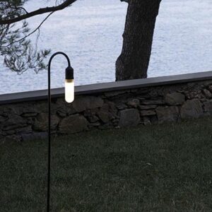 MUSE is a modular outdoor lamp system that offers multiple lighting solutions based on the needs of the user, by combining one of the 3 emission sources – CAPSULE, STILLA and SPOT – with various installation accessories. MUSE STILLA DECO BEND SHAPE is floor or ground mounted bollard in 2 heights – 19.7” or 31.5” – with an extra resilient glass cylinder on a curved stem. It is available with a base or ground spike and 2 color temperatures.