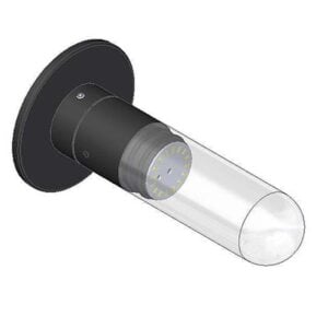 MUSE is a modular outdoor lamp system that offers multiple lighting solutions based on the needs of the user, by combining one of the 3 emission sources – CAPSULE, STILLA and SPOT – with various installation accessories. MUSE STILLA WALL is the wall mounted version with an extra resilient sandblasted glass cylinder on a compact base offered in 3.9” length with a black finish on base.