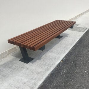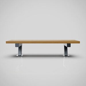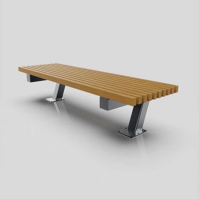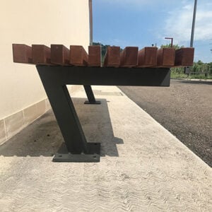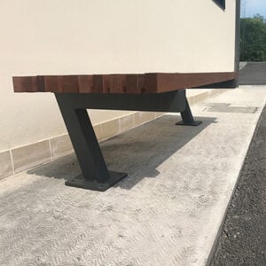 NERVO Bench is a bench from the NERVO collection for outdoor spaces with a seat made of hardwood, and a frame of hot galvanized steel that can be powder coated any RAL color. Fixed with base flange with expansion anchor or rooted in the ground.