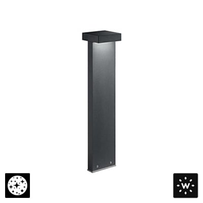 The Plin 3 series is a line of rectangular, surface mounted outdoor bollards available in three different heights with a double beam and asymmetrical diffuse optics. Dark Sky compliant for output below 80°