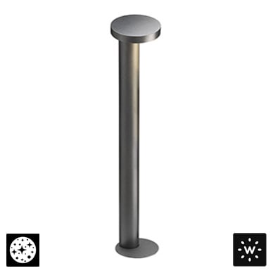 The Plin 5 series is a line of cylindrical, surface mounted outdoor bollards available in three different heights with a single beam and asymmetrical diffuse optics. Dark Sky compliant for output below 80°