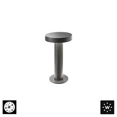 The Plin 6 series is a line of minimalist, surface mounted bollards with a round head and asymmetrical circular optics. It is available in three different heights, 4 color temperatures and 4 standard finishes. Dark Sky compliant for output below 80°