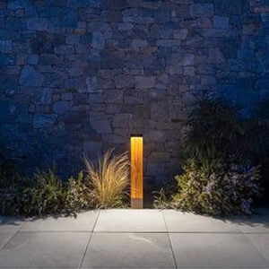 Plin Wood is a family of outdoor bollards that combines a body of weather-resistant teak sourced from FSC®-certified plantations with a head and base in 6082 Anticorodal® aluminum and an anthracite finish. It is available in 3 styles – 2 heights each. Plin Wood 2.1 is the 22.1” version with a flat head.