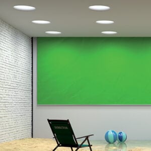 Polaris is a recessed indoor downlight made of AirCoral® with indirect light, rounded edge and a paintable upper dome. It has a bright cupola made of the composite that reflects the light source and spreads it indirectly in the room. It comes in 3000K with a 180° optic and can be used as a trap door to inspect the false ceiling.