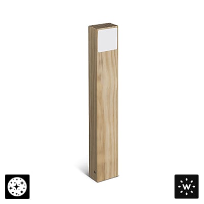 ZYGO is a rectangular LED bollard made of Accoya®, a sustainable, highly durable wood treated with Acetylation treatment, with a diffused light source built into the head. It is 23.6” high with 8W total power. Dark Sky compliant for output below 80°.
